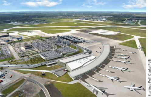 A new LEED-certified airport terminal, designed by Argentine architect Cesar Pelli and Stantec was constructed in two phases, with construction beginning in 2007 and ending on October 30, 2011 when it was officially opened to the public. As of 2020, the economic impact of the airport was growing as passenger traffic increased, in addition to the airport’s continued rank as the busiest hub for freighter flights in Canada.