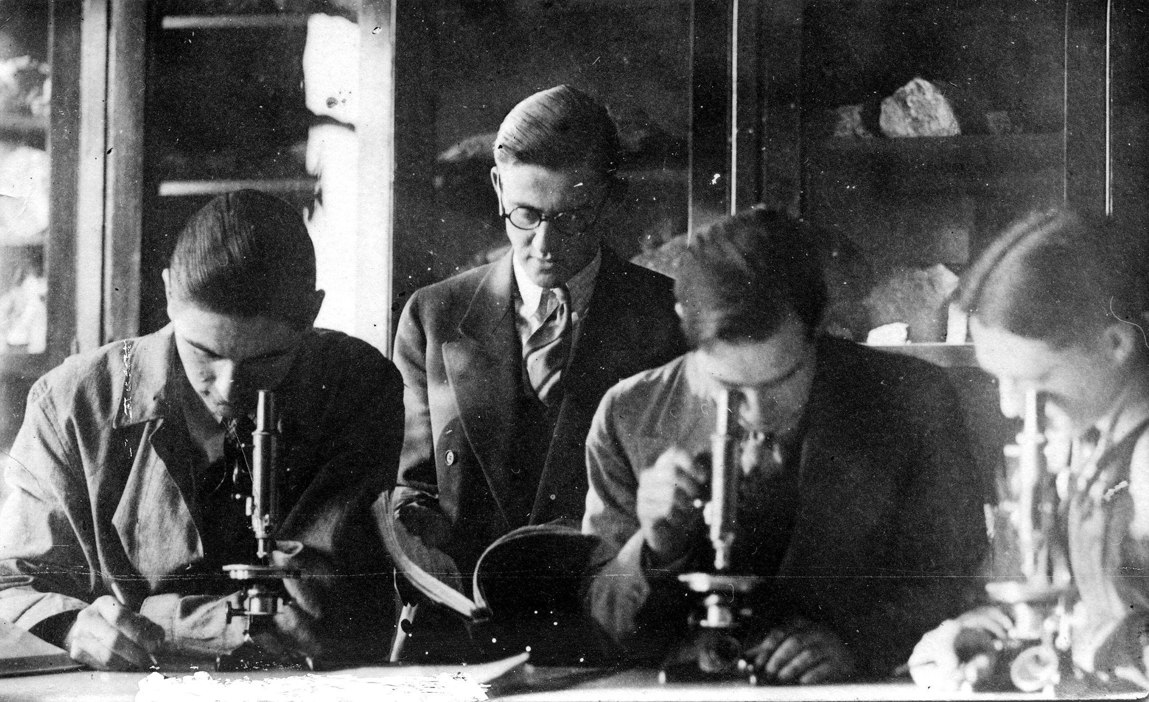 Geology students in a Broadway Campus laboratory in 1928 Photo Credit - Department History Wall.